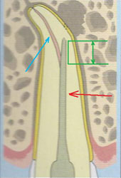 ![]() | После того как канал достаточно отмыт и расширен, его пломбируют гуттаперчей и небольшим количеством специальной пасты |