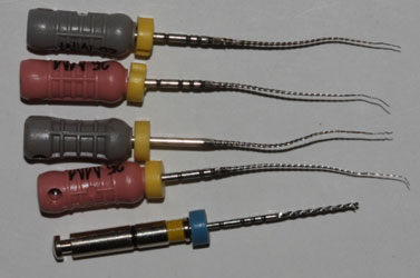 ![]() | Затем производится постепенное расширение канала тонкими гибкими инструментами и одновременное механическое удаление остатков пульпы |