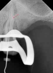 Это довольно неприятное осложнение, т.к. при повторном лечении «нащупать» снова реальный ход естественного канала очень непросто. А без этого невозможно рассчитывать на успех лечения. Представьте себе, что Вам надо наощупь, с закрытыми глазами вдеть нитку в самое маленькое игольное ушко… При этом ушко иголки находится в глубине канала диаметром всего 1-2 мм. Примерно с этим каждый раз сталкивается эндодонтист в таких случаях. В решении таких задач нужно большое мастерство, хорошее оснащение, пространственное мышление, изрядное терпение (причем и со стороны пациента тоже), ну, и доля удачи.